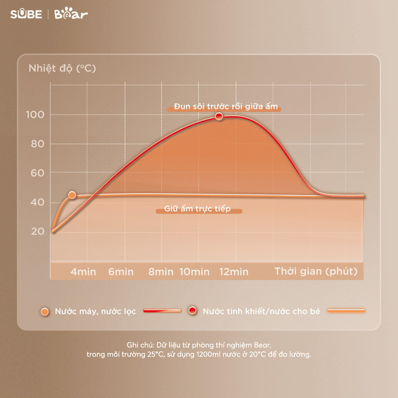 | 3 | Hâm nóng | 55°C | 55°C | – | Hâm nóng nước để pha sữa, pha bột ăn dặm |
