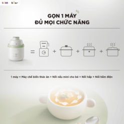 Máy kết hợp quy trình nấu và xay liên tục, tạo ra món cháo hoặc hỗn hợp nghiền mà mẹ không cần đứng canh. Toàn bộ thao tác được thực hiện trong một cối duy nhất, tránh nhiễm khuẩn chéo.