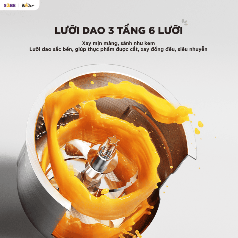5. Lưỡi dao ba tầng sáu lưỡi xay nhuyễn đồng nhất