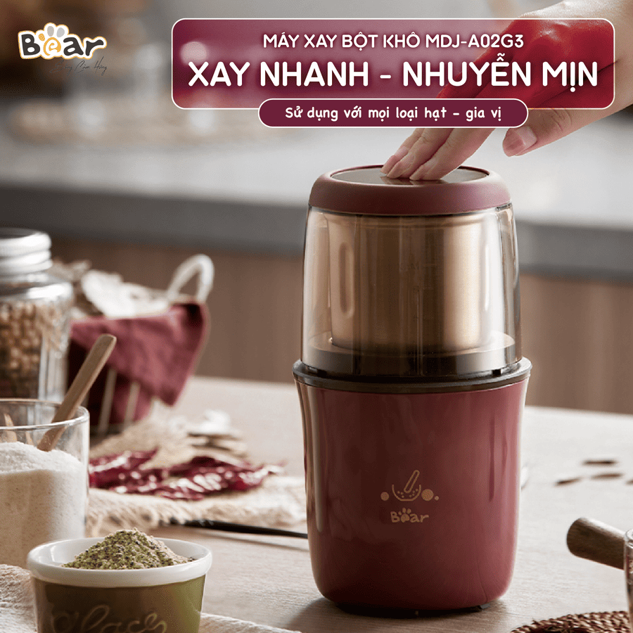 Bạn cần máy xay bột khô, xay các nguyên liệu thuốc, xay đồ khô… thành bột tiện lợi nhỏ gọn, màu sắc tinh tế. Hãy tham khảo ngay sản phẩm máy xay bột khô A02G3 của nhà Bear.