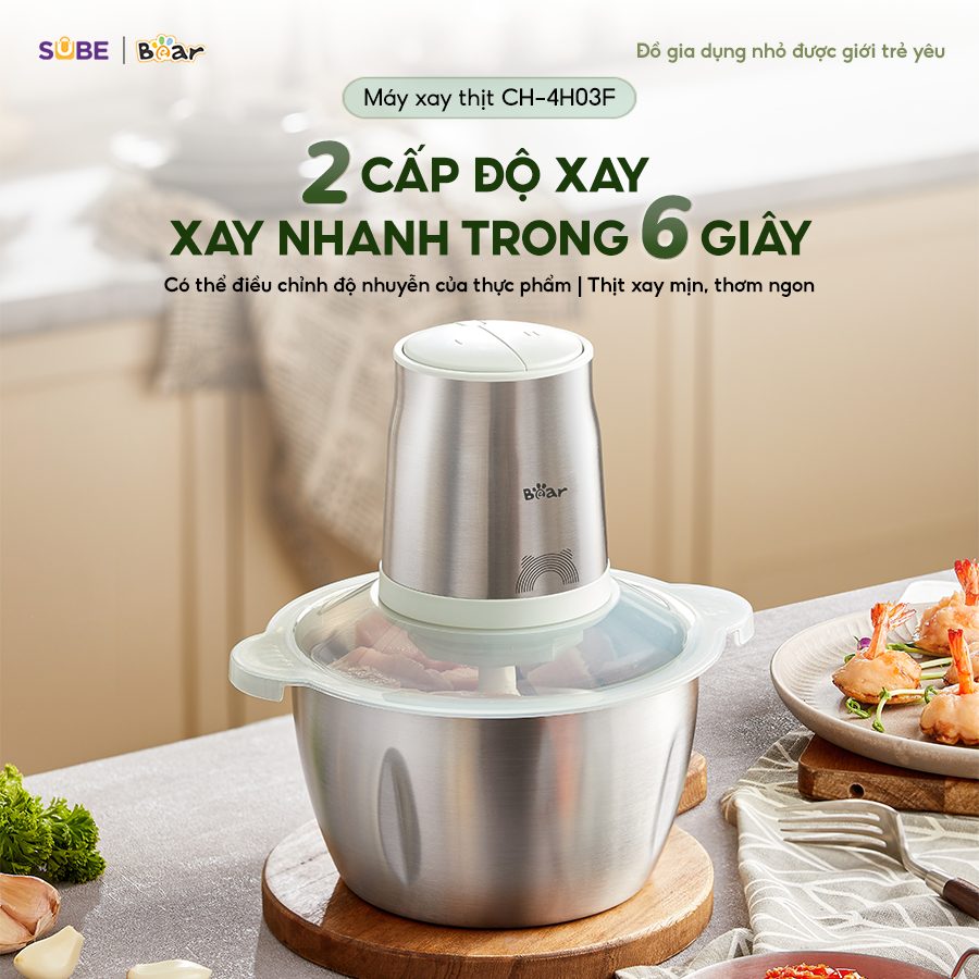 Máy xay thịt Bear CH-4H03F là trợ thủ đắc lực để bạn tạo ra những món ăn dinh dưỡng cho cả gia đình.