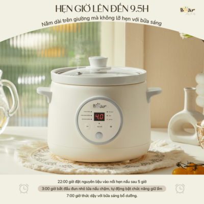 Tất cả các dòng nồi nấu chậm Bear đề có chế độ hẹn giờ và giữ ấm. Đây là tính năng rất được nhiều chị em nội trợ yêu thích, nhất là những người bận rộn.