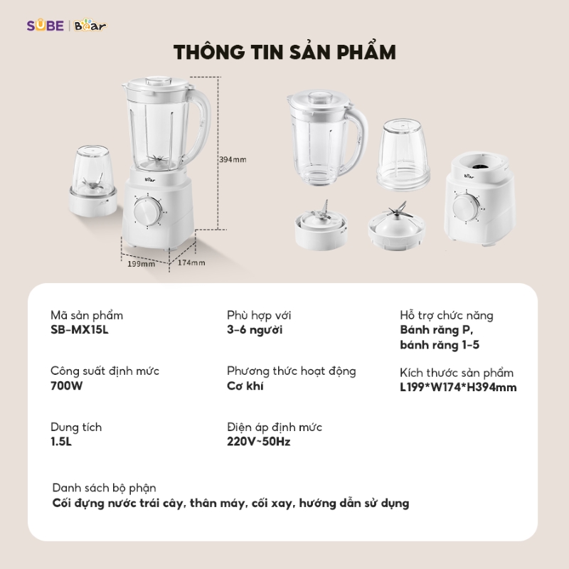 Mua máy xay sinh tố Bear tại SUBE Việt Nam – Chính hãng 100%, bảo hành 18 tháng