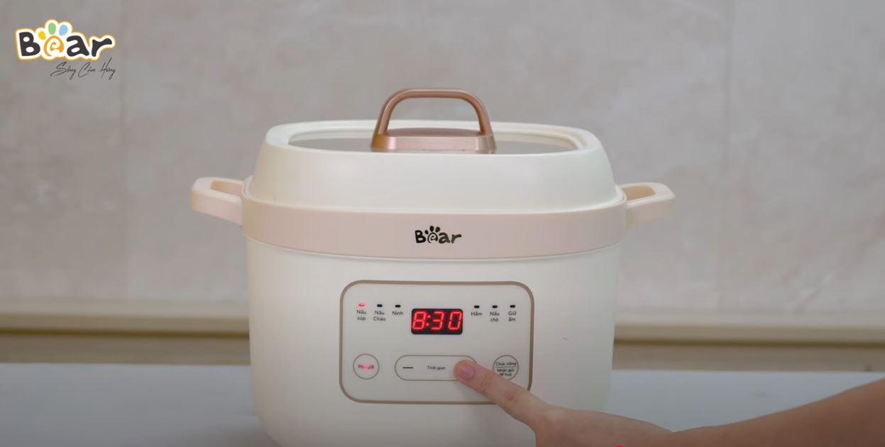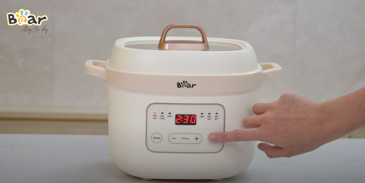 Việc chọn chức năng nấu đúng cách là bước quan trọng để đảm bảo món ăn đạt được hương vị và chất lượng tốt nhất. Các nút nồi nấu chậm Bear đều có tiếng Việt trực quan giúp bạn dễ dàng thao tác, không lo chọn sai chế độ.