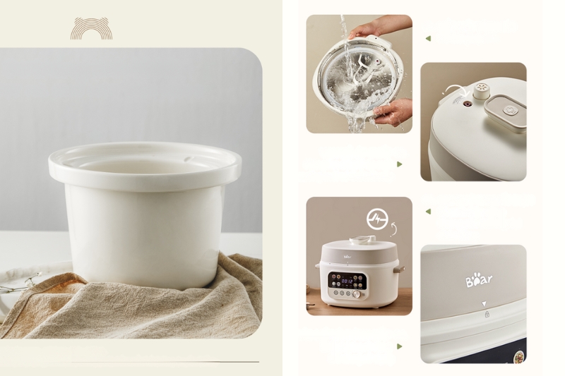 • Vệ sinh đơn giản, chỉ cần vệ sinh lòng nồi sứ/gốm và nắp kính.