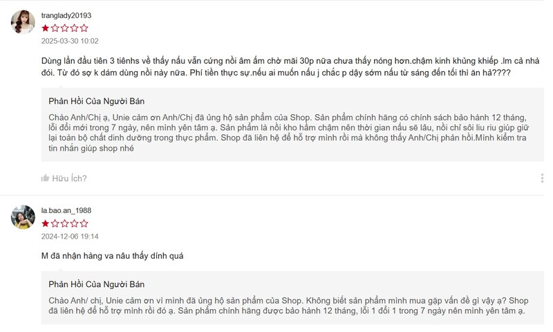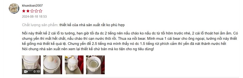 - Khách hàng phản hồi nấu 3 tiếng không ấm: Một số trường hợp gặp vấn đề về công suất nhiệt, không đạt hiệu quả nấu như mong đợi.