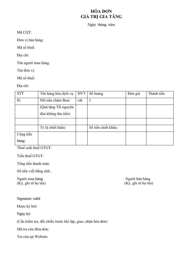 - Giá trị hàng hóa, số lượng và thuế suất GTGT.