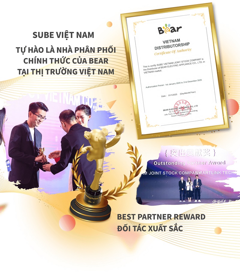 SUBE Việt Nam tự hào là nhà nhập khẩu và phân phối chính hãng, đối tác tại Việt Nam của Bear và OIDIRE – hai thương hiệu đồ gia dụng thông minh hàng đầu, được đông đảo người tiêu dùng tin tưởng và đánh giá cao về chất lượng, thiết kế và độ bền. Chúng tôi thấu hiểu nhu cầu quà tặng đặc thù của ngành tài chính và cam kết mang đến giải pháp tối ưu.