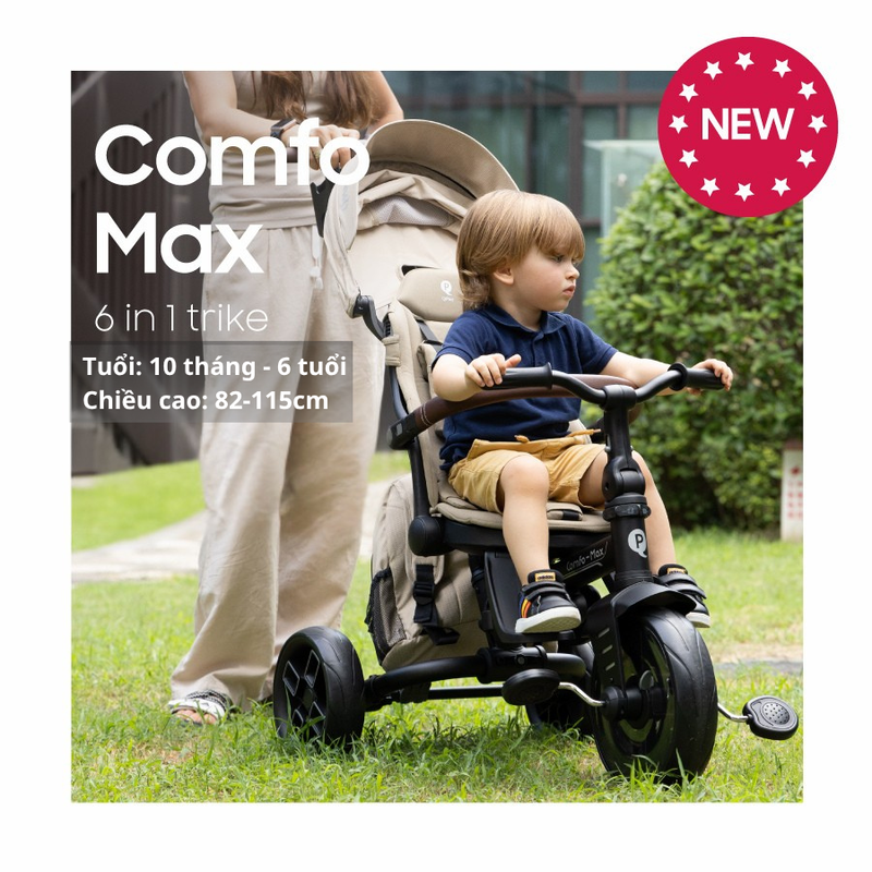 Hành trình lớn khôn của con là chuỗi ngày đầy ắp những khám phá đầu tiên: lần đầu con tò mò nhìn ngắm thế giới, lần đầu con tự tin đặt những bước chân nhỏ xinh, và lần đầu con tự mình đạp xe rong chơi. Thấu hiểu mỗi cột mốc quý giá đó, Qplay mang đến Xe đẩy 3 bánh Comfo Max – một người bạn đồng hành thông minh, an toàn và linh hoạt, sẵn sàng cùng con và cha mẹ viết nên những kỷ niệm tuyệt vời từ 10 tháng đến tận 6 tuổi. Xe đẩy 3 bánh Comfo Max là một khoản đầu tư xứng đáng cho sự phát triển và niềm vui trọn vẹn của con.